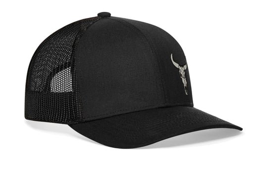 Bull Skull Trucker Hat | Black Bull Skull Snapback