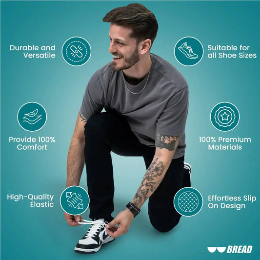 Bread Locks are our elastic cut to fit laces that come with two round laces and matching accessories. They’re more versatile than the classic Bread Lace, built to fit almost any shoe you throw at them. Cut-to-size and ready for anything, from army boots to sprinting spikes, Bread Locks give you a full 63 inches of stretch that can be trimmed to fit any shoe.