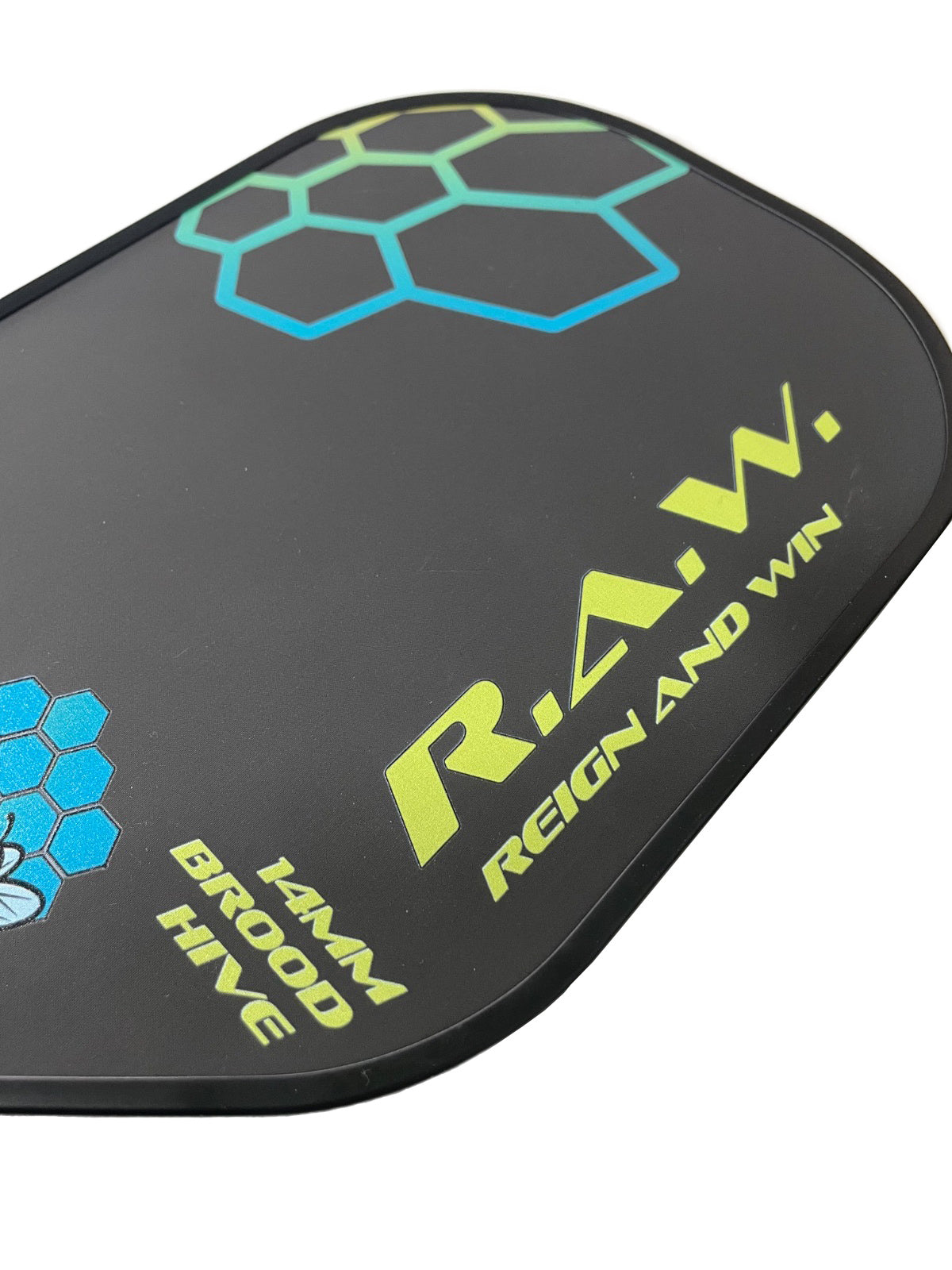 The Brood Hive weighs an average of 6.8 ounces to give you the stability you need at the net for blocking and returning hard-hit balls. An elongated shape allows for great court coverage, with a long handle for that two handed backhand for all you tennis players.